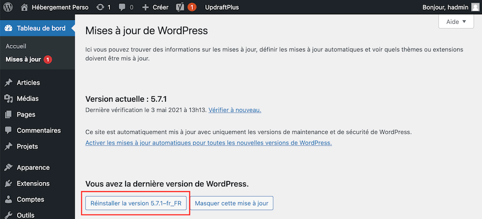 1. Mettre à jour ou réinstaller WordPress